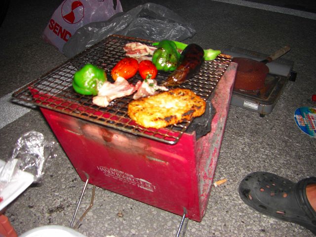 BBQは折りたたみ式の簡易コンロですが、コレで十分!