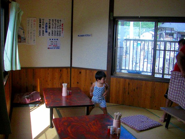 中は大きなテーブルが二つあり、そこは相席で皆が食べており、他に小さな座敷があり2人席と4人席がありました。子連れで入るのにとっても勇気要りました^^;