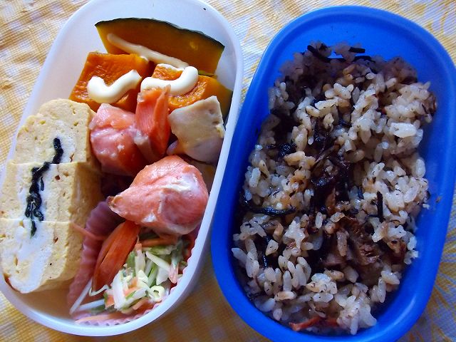 野菜などは週末に買っていたカボチャを蒸して温野菜に。