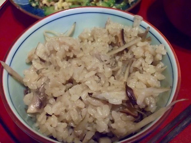 挽肉に竹の子、葱、干し椎茸などと調味料を練りこんで作りました。
