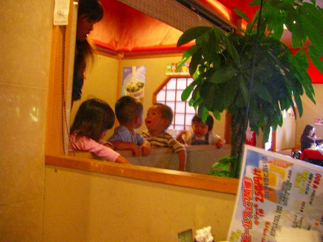 中は大きなテーブルが二つあり、そこは相席で皆が食べており、他に小さな座敷があり2人席と4人席がありました。子連れで入るのにとっても勇気要りました^^;