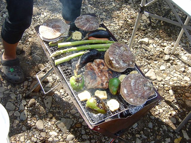 BBQは折りたたみ式の簡易コンロですが、コレで十分!