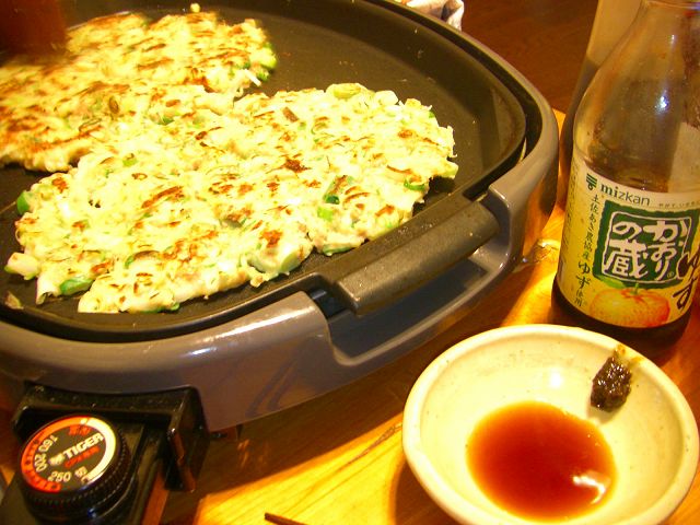 そして夜はネギ焼とお好み焼き!大人5人は中々お好み焼きにありつけないので中華饅頭を作りました♪