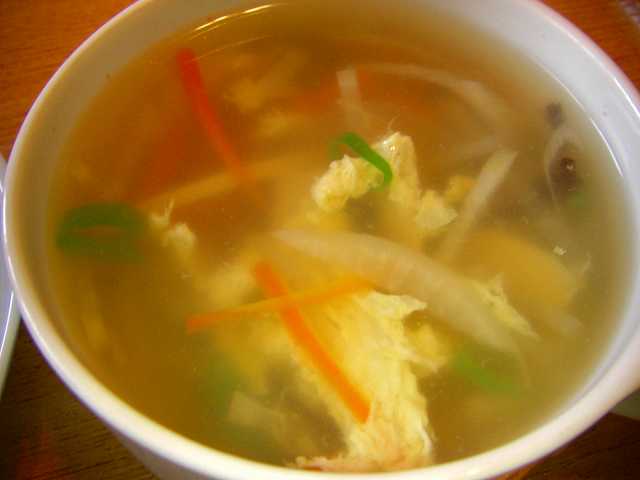 朝はこのスープと昨日のフライでフライ丼を食べてもらいました。