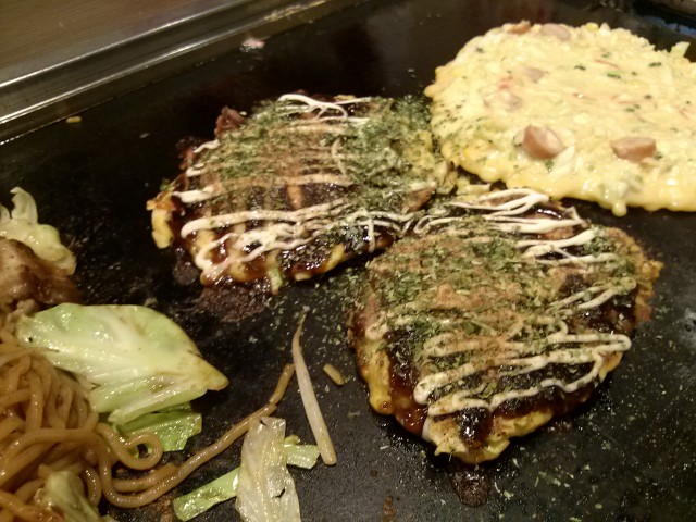そして鉄板のミックスお好み焼きを注文。具材たっぷりです♪