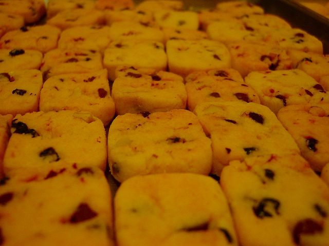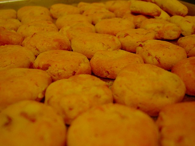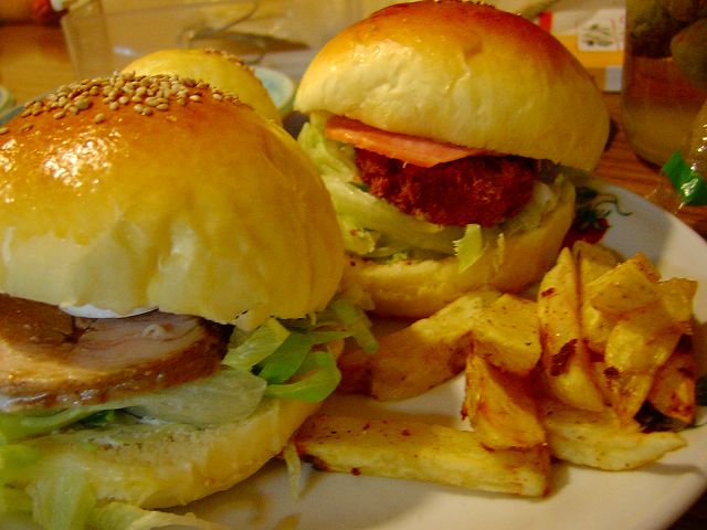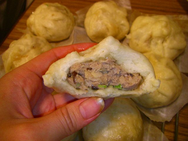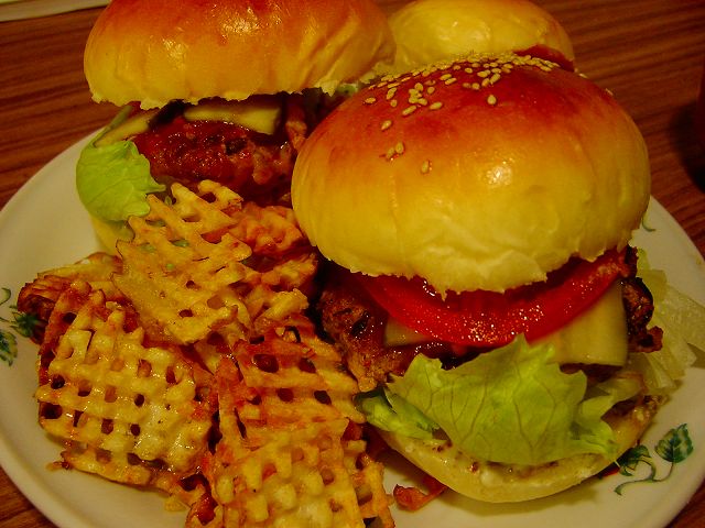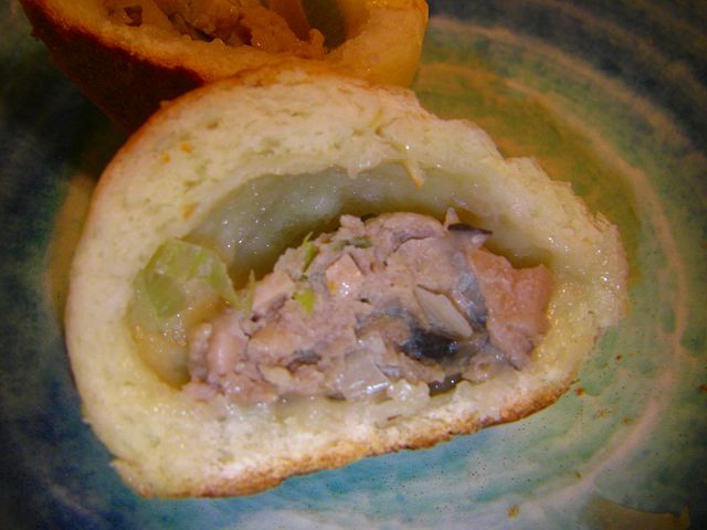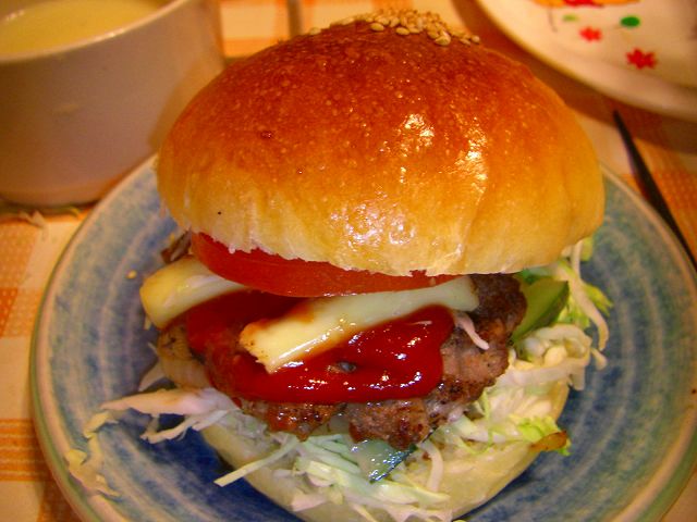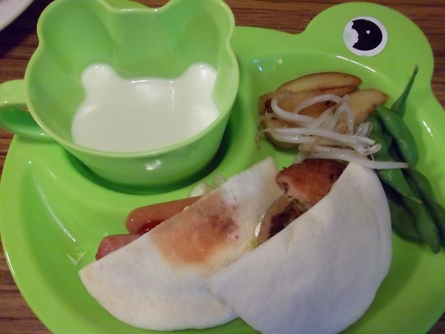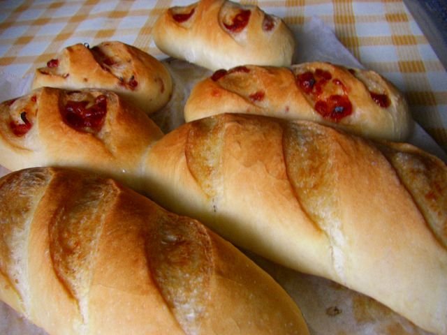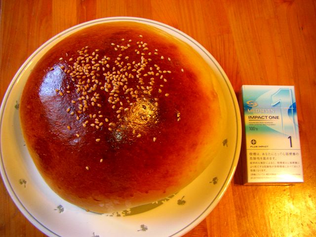 ドッグパン(16個):強力粉480g、砂糖32g、塩8g、イースト10g、ショートニング48g、牛乳300gを良く練って発酵させてから、成型して180度で焼きました。
