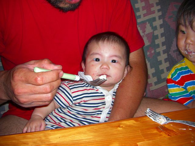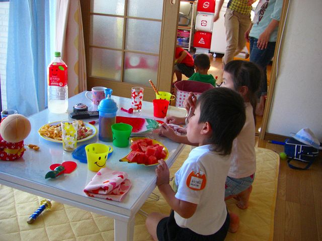 まんま、誕生日ケーキの残りで作りましたが、形が変われば気付かない様子^^;