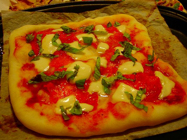 生地はホームベーカリーのレシピブックのピザ生地で作りました。ピ