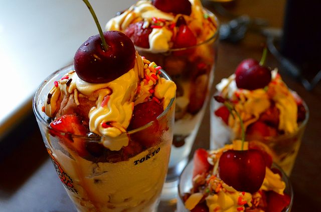 上の方が、アイスや生クリームで甘くてしつこいので、下の方でさっぱりさせるのが好みなんです~(*^_^*)