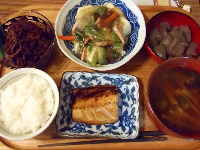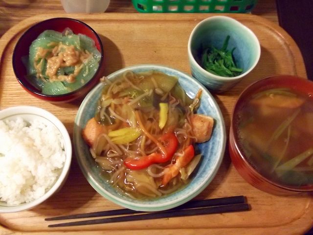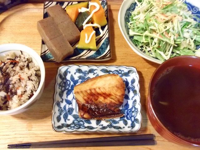 野菜などは週末に買っていたカボチャを蒸して温野菜に。