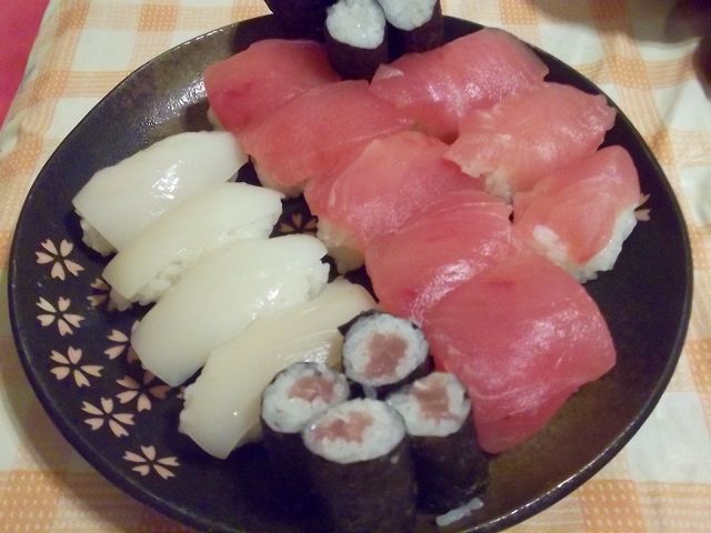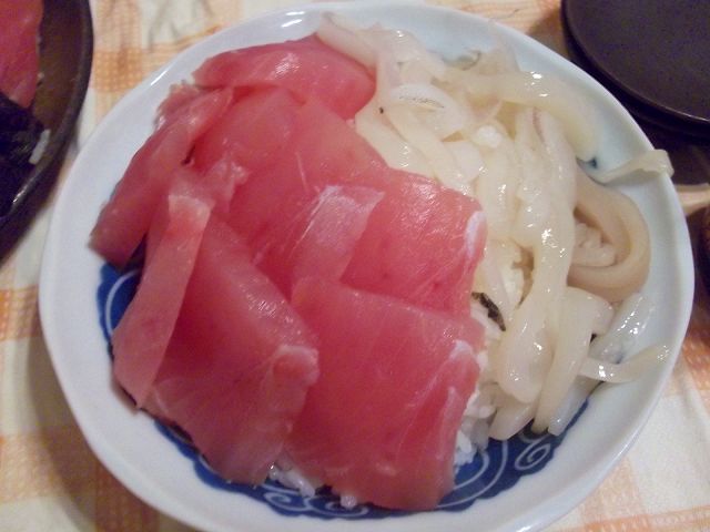 何しろ半額処分品・・・弾力が弱く手でほぐしていると潰れてしまう率が高かったです。こういうものはやっぱり新鮮なものを買わないとなんですね~^^;漬けダレは添付の市販品で!