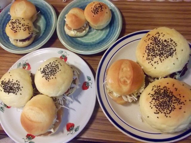翌日から49日で数日家を開けるので、お弁当代わりに「肉まん」ならぬパンに包んだ「肉パン」を差し入れに大量作製しました(*^_^*)
