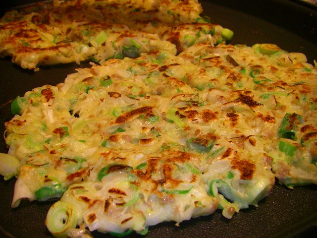そして夜はネギ焼とお好み焼き!大人5人は中々お好み焼きにありつけないので中華饅頭を作りました♪