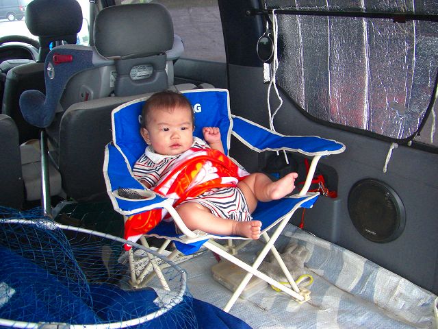 女性陣は車の陰で椅子を出してマッタリです。