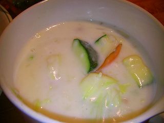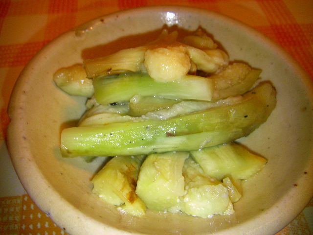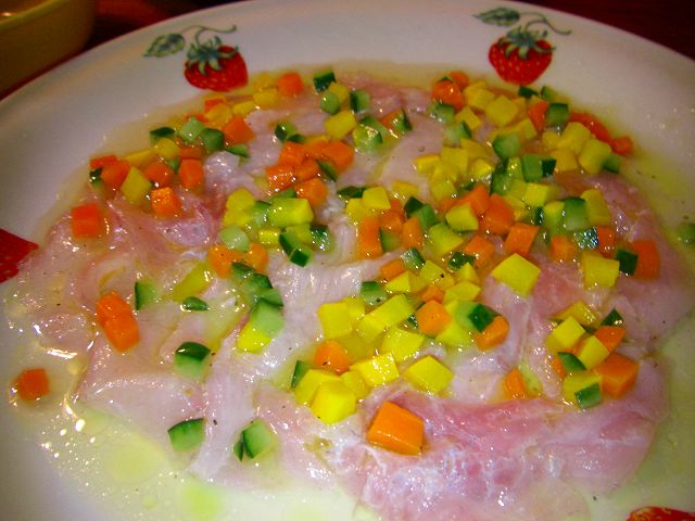 キュウリ、人参、ズッキーニをあしらったカルパッチョは味も上品で全てに味が優しく馴染んでいて絶品♪聞くと、レモン汁に柚子とオリーブオイルを少々、塩コショウを少々しただけというのですが~それでこんなに違うのかな~?!やっぱり同じ材料を使ってもプロは全く違う物を作りますね~☆