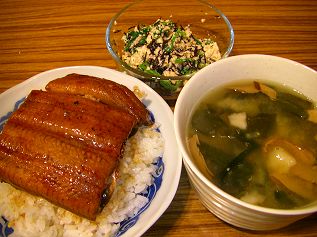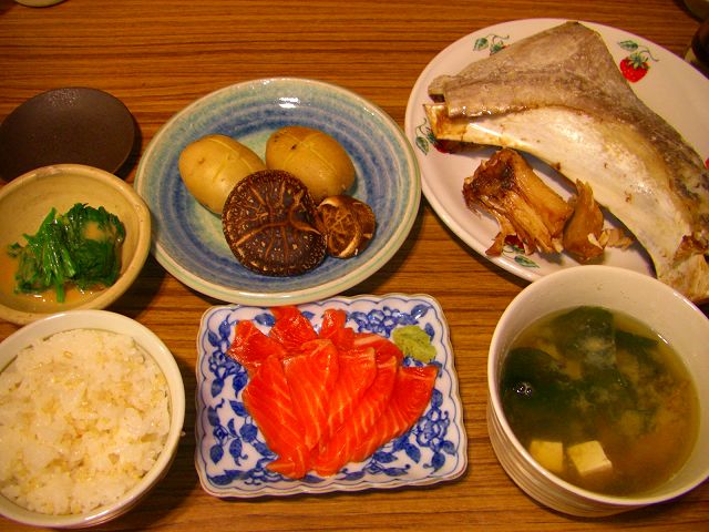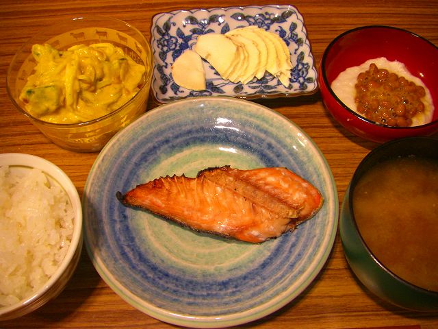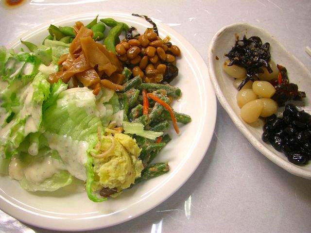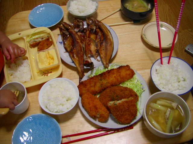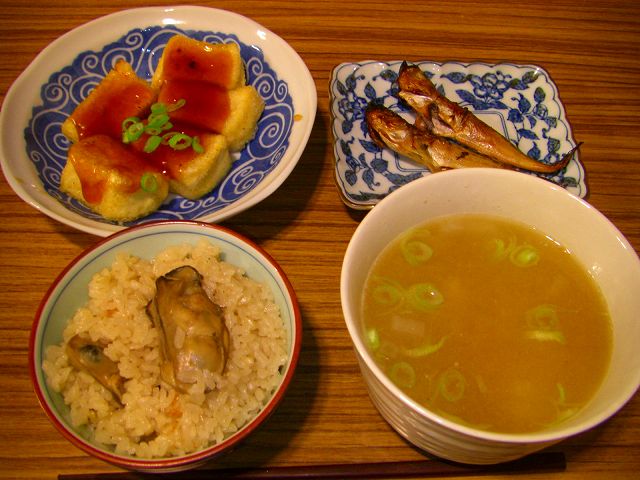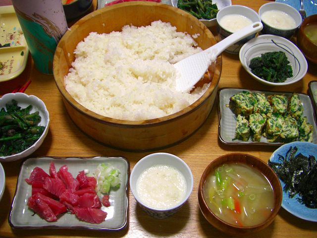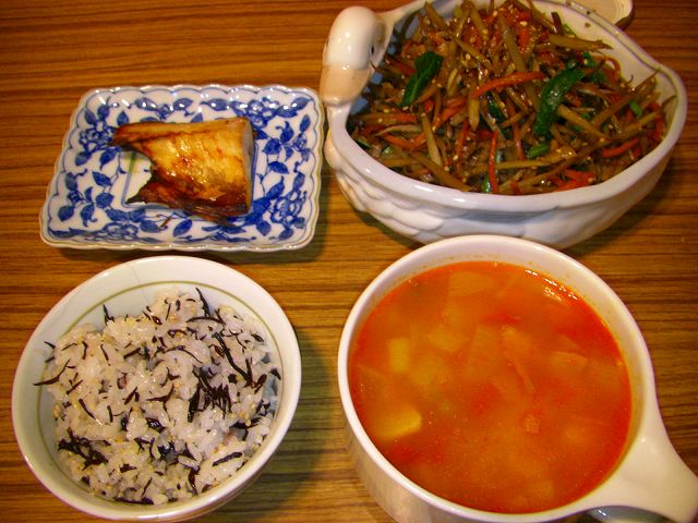 竹の子ご飯にたけのこ入り中華スープ、筍焼、鯖焼、新ジャガのサラダです。