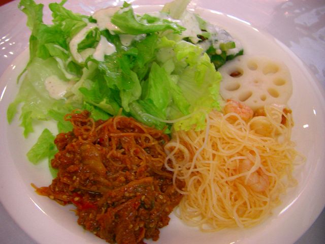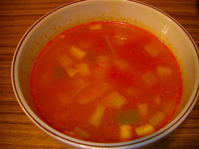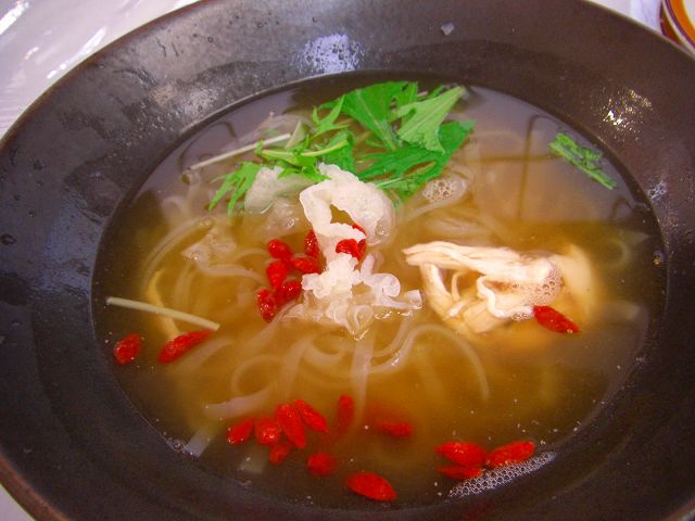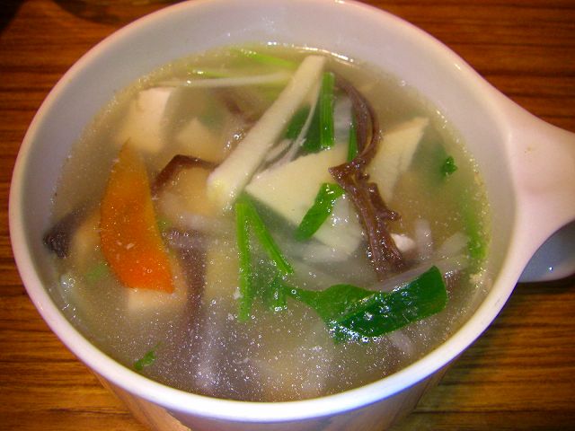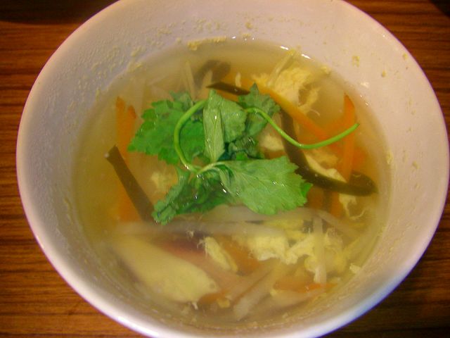 そしてコレは中華スープです。鶏がらの出汁に、ザー菜が入っているのがポイントです。