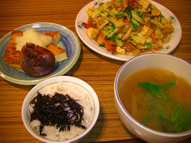 ごま油で炒めてあるものではなく丸ごとかスライスだけしてあるザー菜を千切りにし、竹の子、人参、大根、玉ねぎ、長ネギ、きくらげとお豆腐を入れて塩コショウで味を調整して出来上がりです。溶き卵を入れても綺麗です。