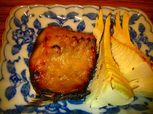 そして穂先の部分を8等分のくし切りにして鯖の味噌漬けと一緒にグリルで焼きました。コレはさすがにちょっとだけ噛むごとにイガっぽさが出てきますが、コレが美味しい♪