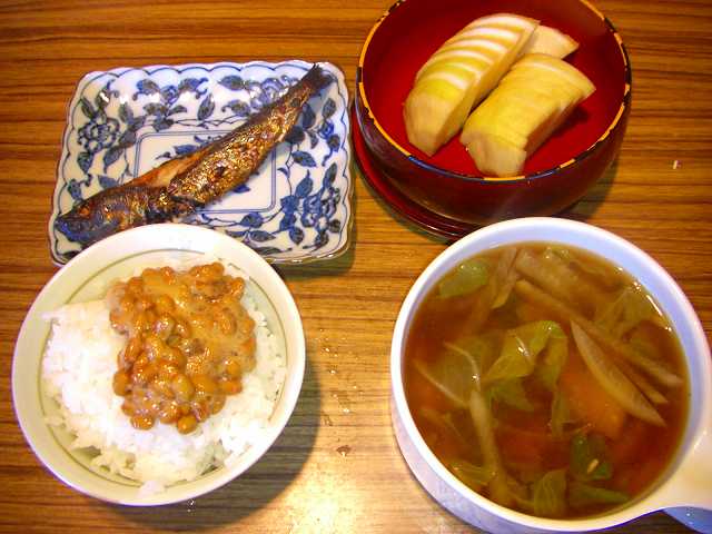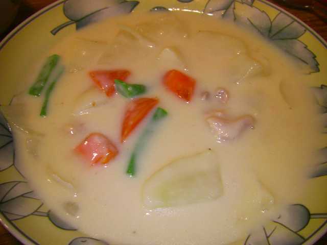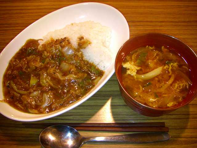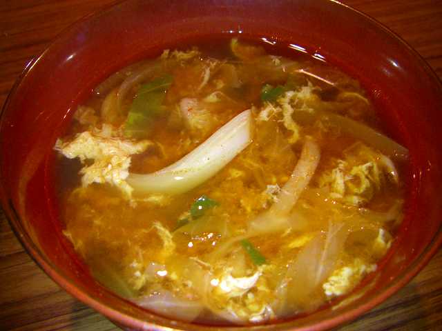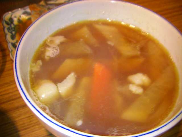 朝はこのスープと昨日のフライでフライ丼を食べてもらいました。