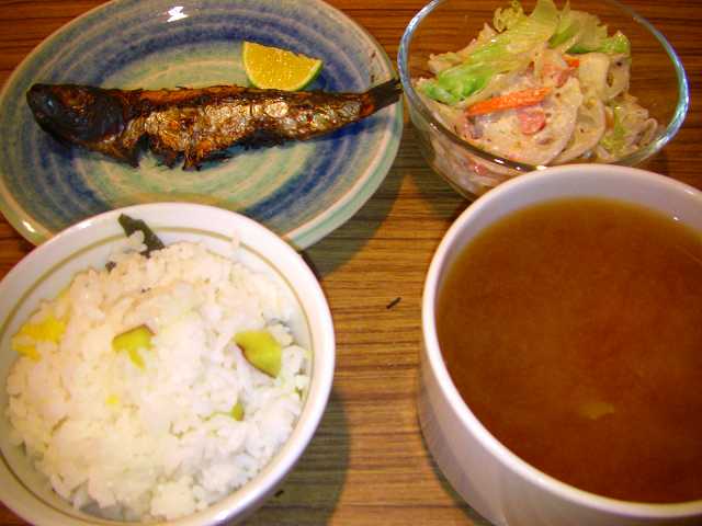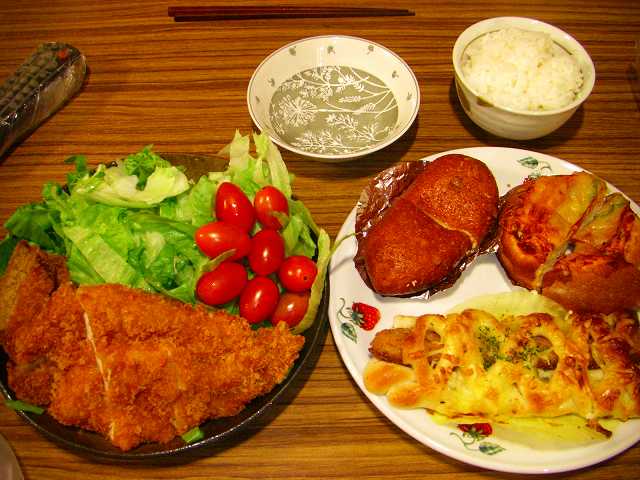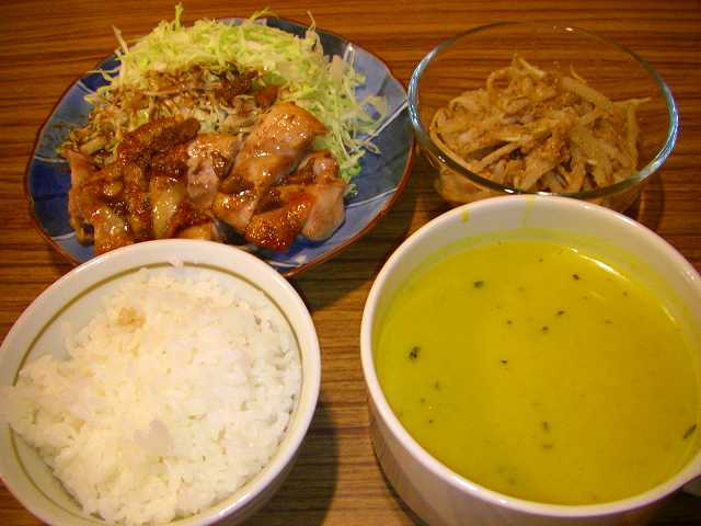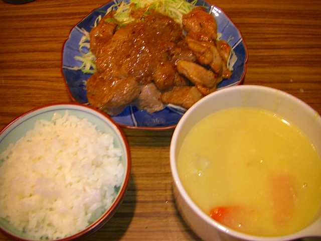 そしてこれは遠足の日の夜の夕食です。豚肉&鶏肉のしょうが焼きと豆乳シチューのリメイクです。シチューが少しだけ残っちゃう事ってありませんか??そんな時はコーンのクリーム缶とブイヨンを足してコーンクリームスープにしちゃいました。これ以外といけちゃいました~^^