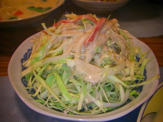 キャベツの千切りにオニオンスライスにカニカマを割いたものを混ぜてゴマドレでいただきました!