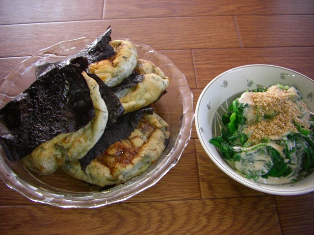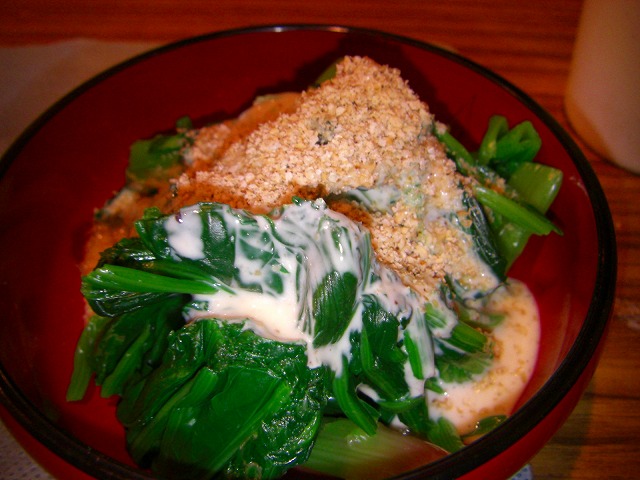 そしてほうれん草のお浸しです。昨日また一杯貰ってきたので、毎日食べても飽きないように・・・Let's チャレンジ!