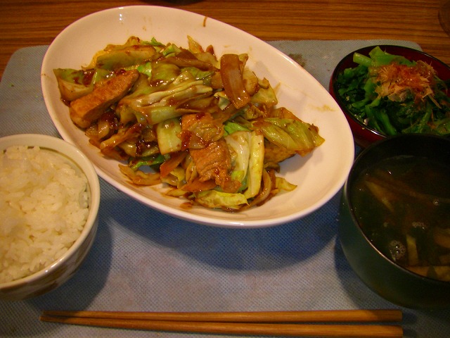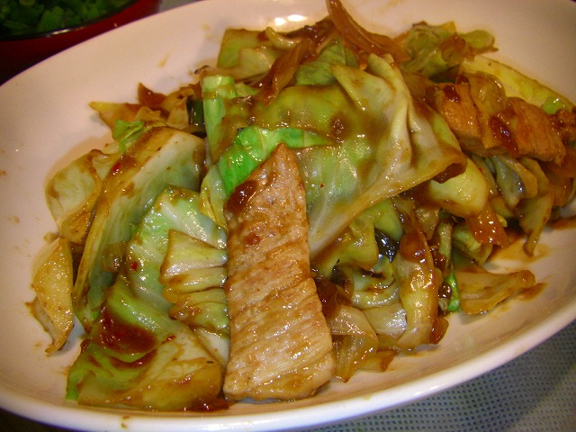 ホイコーロー(回鍋肉)は冷凍のお肉と先日2つで¥100だったキャベツがメイン!それに玉ねぎとにんにくがあれば出来ちゃうんです。豆板醤が無ければ鷹の爪でもいいし、テンメンジャンが無ければ普通のお味噌でも美味しいですよ♪