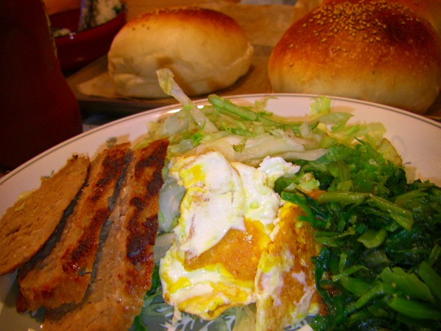 そして夜は材料が冷蔵庫と冷凍庫に良い感じに有ったので、またまたハンバーガーです。今日は全粒粉を多めにいれて作ってみました。バンズのレシピはこちら