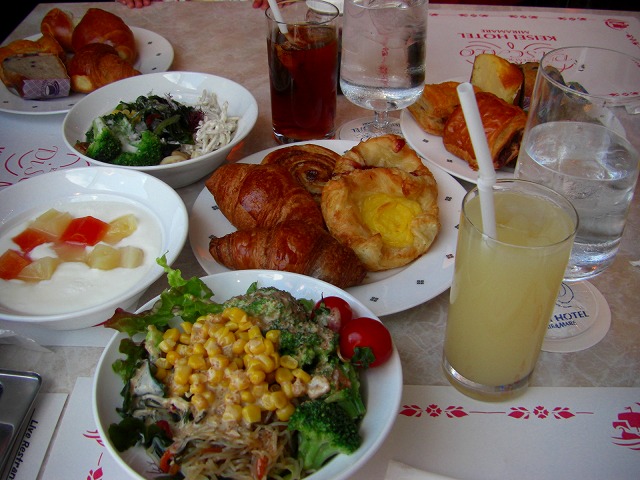 パンにサラダ、ヨーグルトにフルーツ、飲み物がすべてブッフェになっています。そしてここのアイスミルクティーがまた美味しかったです。香りがとっても良くて多分アールグレイのお茶だと思います。★美味しそうと思ったら★