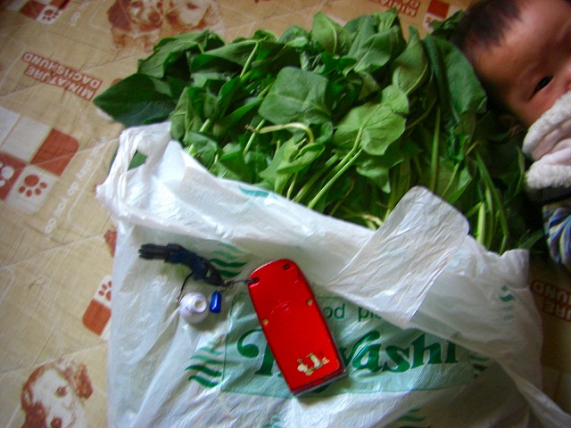 ほうれん草やカメラに興味を持つのではなく、ちゃっかり正面からカメラ目線で写る所は凄いとしか言いようがありません・・^^