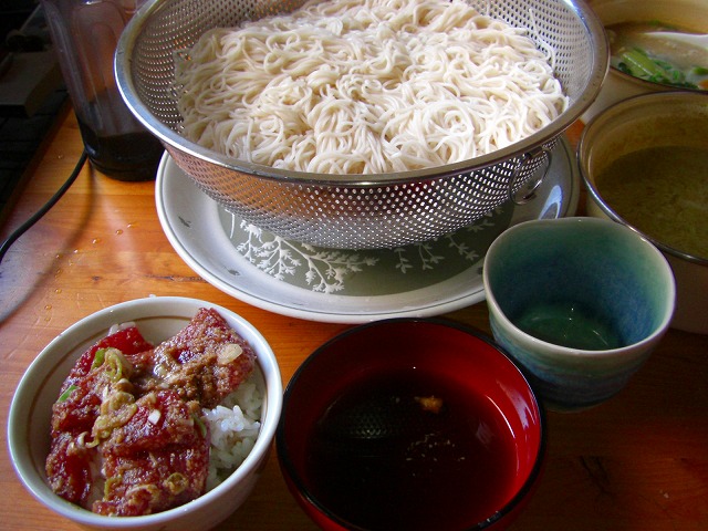 そのカツオを半分使い漬け丼でお昼を・・・と思ったらご飯が少ない!急遽そうめんをゆでて、グリーンカレーの残りと朝のチャウダースープの残りでしのぎました^^;