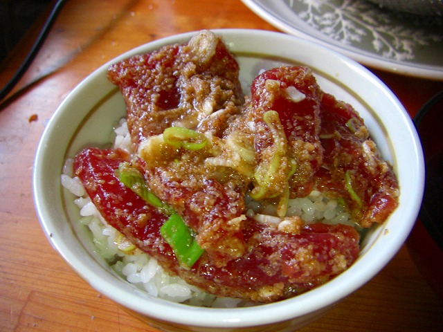 茶碗一杯の漬け丼でしたが、とろりとしていて美味しい鰹でした!漬け汁は醤油、みりんと砂糖、切りゴマと葱を混ぜたものです。ゴマが多かったかもです^^;