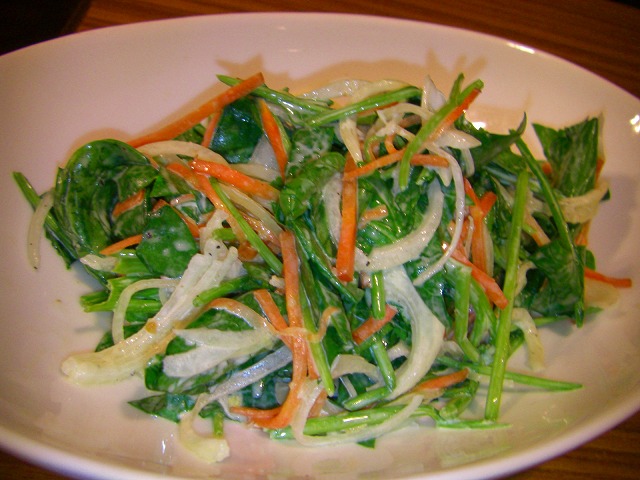 サラダはほうれん草の生サラダを食べたことが無いという義母の為に急遽作ってみました。マヨネーズ、塩コショウ、柑橘果汁で作るこのサラダは癖になる美味しさです!!シトラスサラダのレシピはこちら