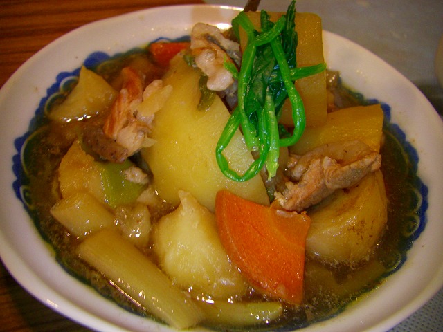 具はジャガイモ、人参、玉ねぎに・・・大根とほうれん草をINしちゃいました^^;結構大根がしっくりとカレーにあっていたのには自分でびっくりしちゃいました^^