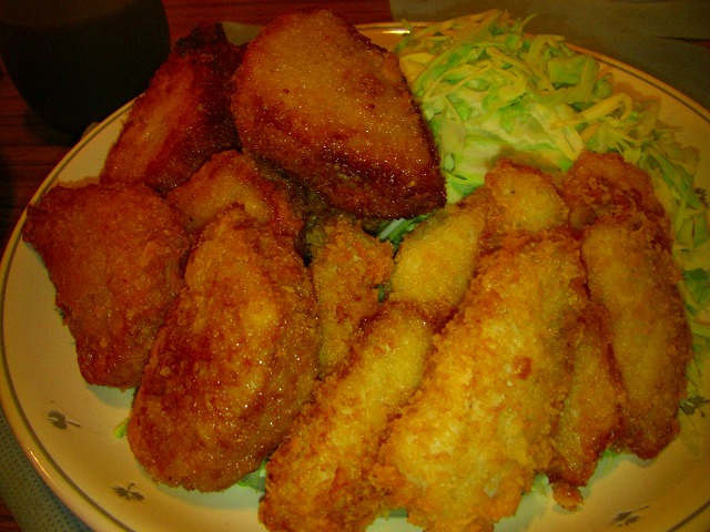 ひれカツと白身魚フライは衣をつけて冷凍しておいたものです。魚は以前旦那が釣ってきたものです。冷凍しちゃうとふわふわ感が少し減っちゃいます(>_<)