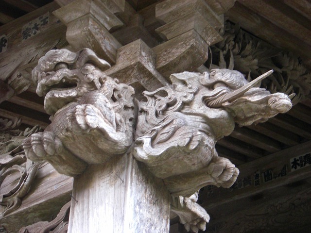 面白かったのが彫り物です。普通はこういうところって竜が彫ってあったりするんですが・・・狛犬と・・・猪??今度調べてみようと思います。