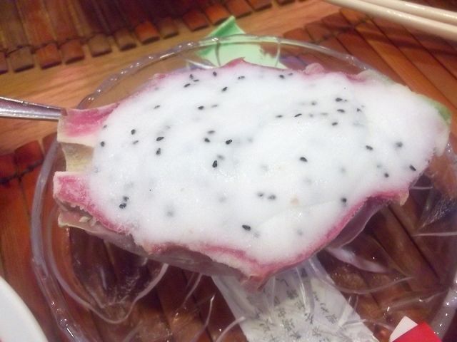 その場で混ぜると書いてありましたが、頼んですぐに来ました・・・最初から刻んで冷凍してあるものを直前に混ぜ込むらしいです。ちょっと凍ったグラパラが後味に青臭く残ります・・・。まぁイメージ的にはやっぱりアロエとかそんな感じ・・・体にはよさそうです。
