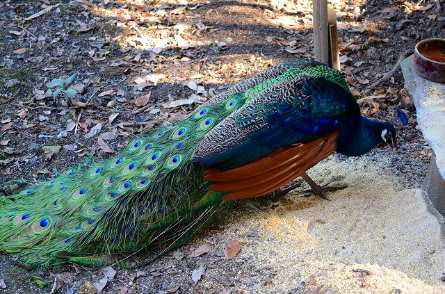 その奥の公園部分は広場のような広場があったり、ネット状の孔雀のいる檻の中に入って身近に触れ合うことが出来ます。近くで見ると孔雀って本当に綺麗です^^