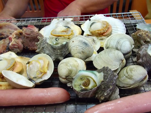 早速貝類焼きまくりです!!!夫は魚介類はあまりなので端っこでお肉を~☆