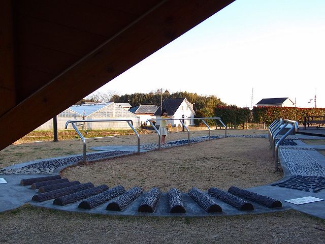 足湯の横には青竹踏みのようなものが沢山あります。まずは一周丸太や、丸い石、小さい石、尖がった石など初級から上級まで揃った一周のコース!!これが思ったより・・・きついです。
