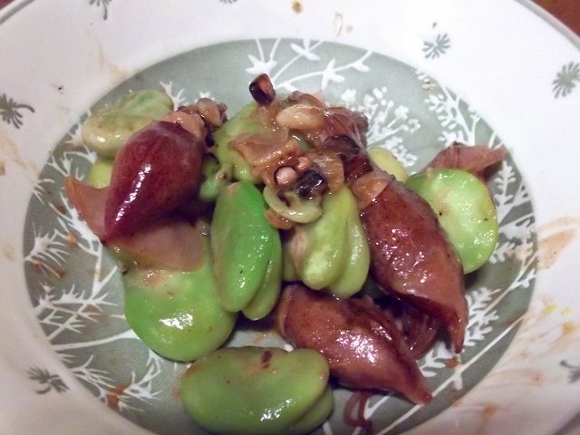 枝豆と昆布??何かの葉っぱ??
