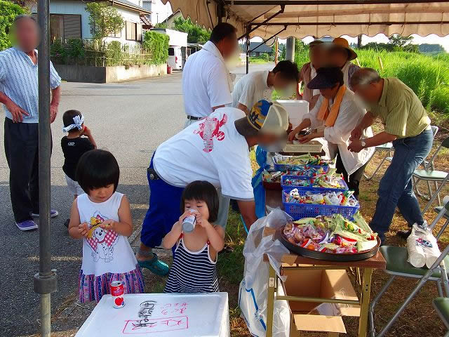 地区内のお祭りなので・・・佐貫地区で取れた御餅や、お米を使ったおにぎり、お味噌汁、枝豆などが振舞われます。