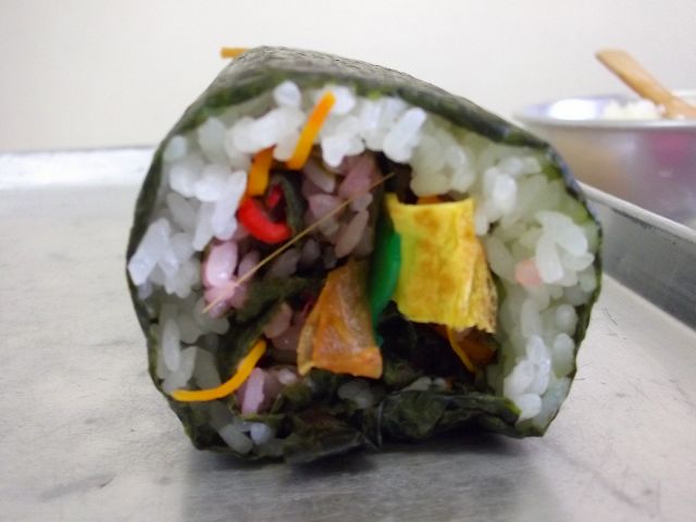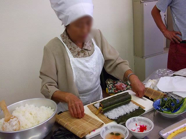 色々なイベントが行われる横では次々と枝豆が茹でられたり、お米を炊いたり、もち米を蒸していたり~。巻き寿司の先生が付きっ切りで活躍していました。この地区の方だったんですね。